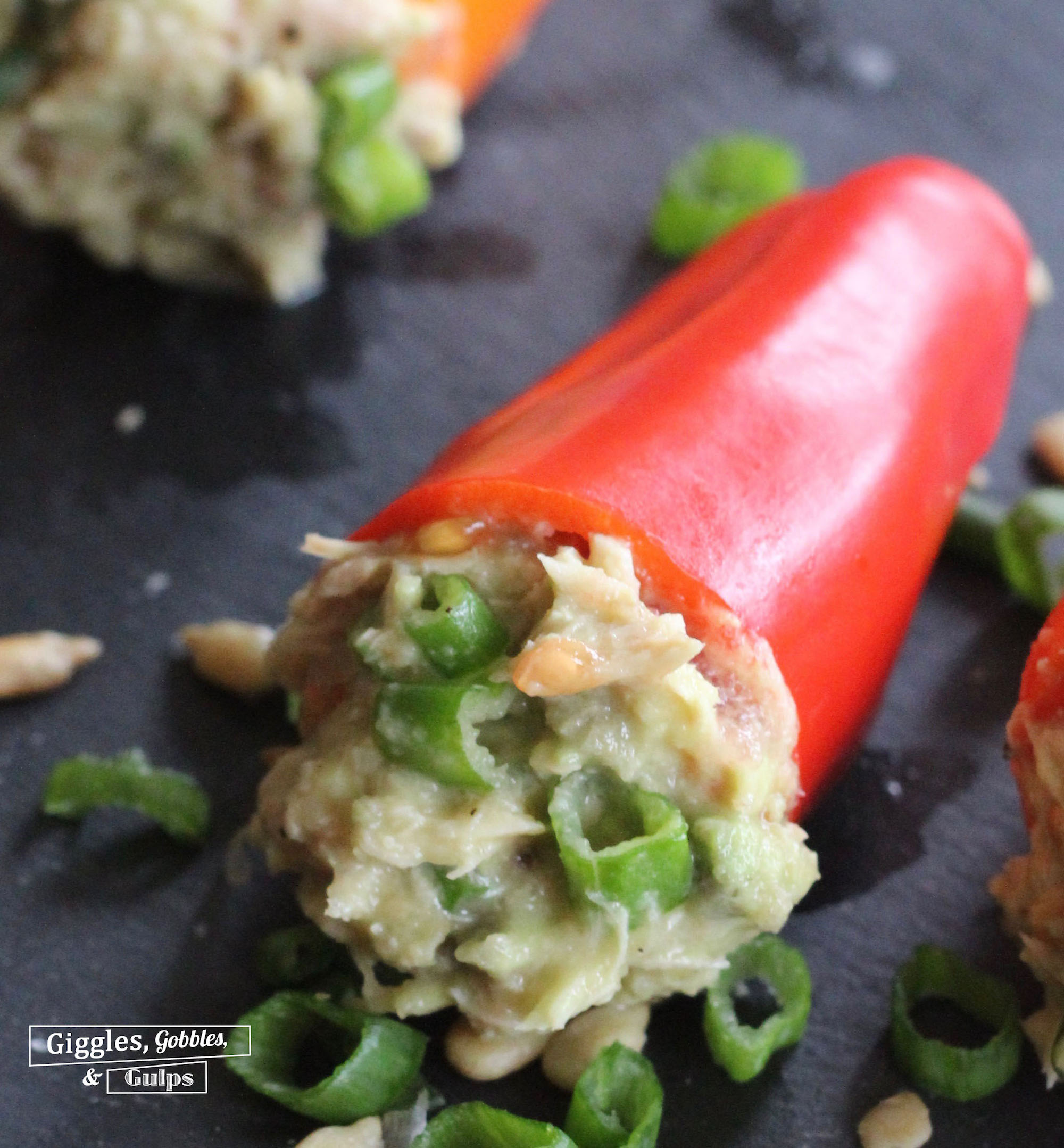 Once the ingredients were combined, I then sliced the tops of the sweet peppers off, scooping out the seeds from the inside, and then stuffed them with the prepared paleo tuna salad.