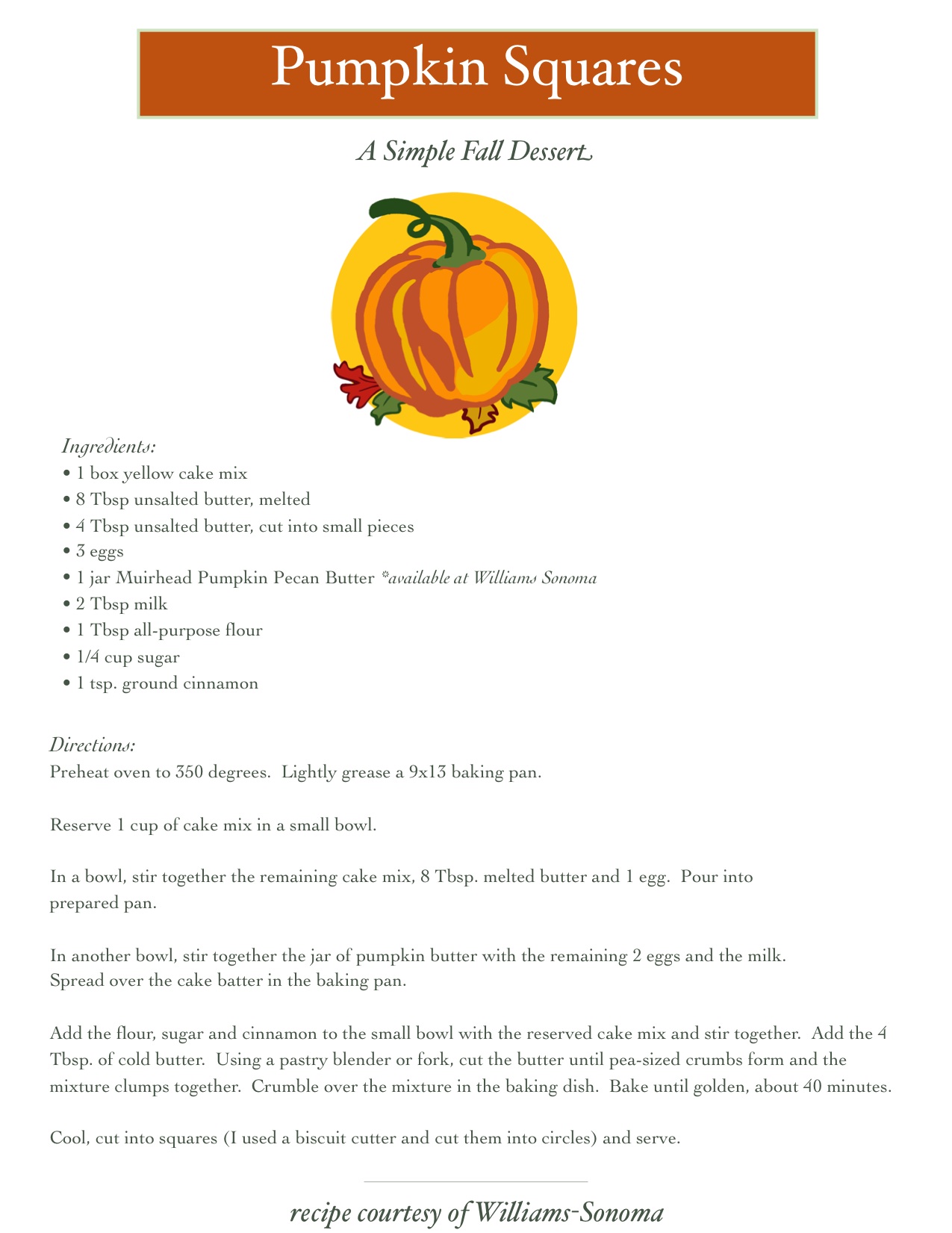 Oh, and here’s a little tip. You can substitute the pumpkin butter for apple butter or cranberry relish. Keep everything else in the recipe the same and you can totally transform this recipe from season to season with ease. I think the Cranberry Squares would be perfect for Christmas. They rock! Enjoy.
