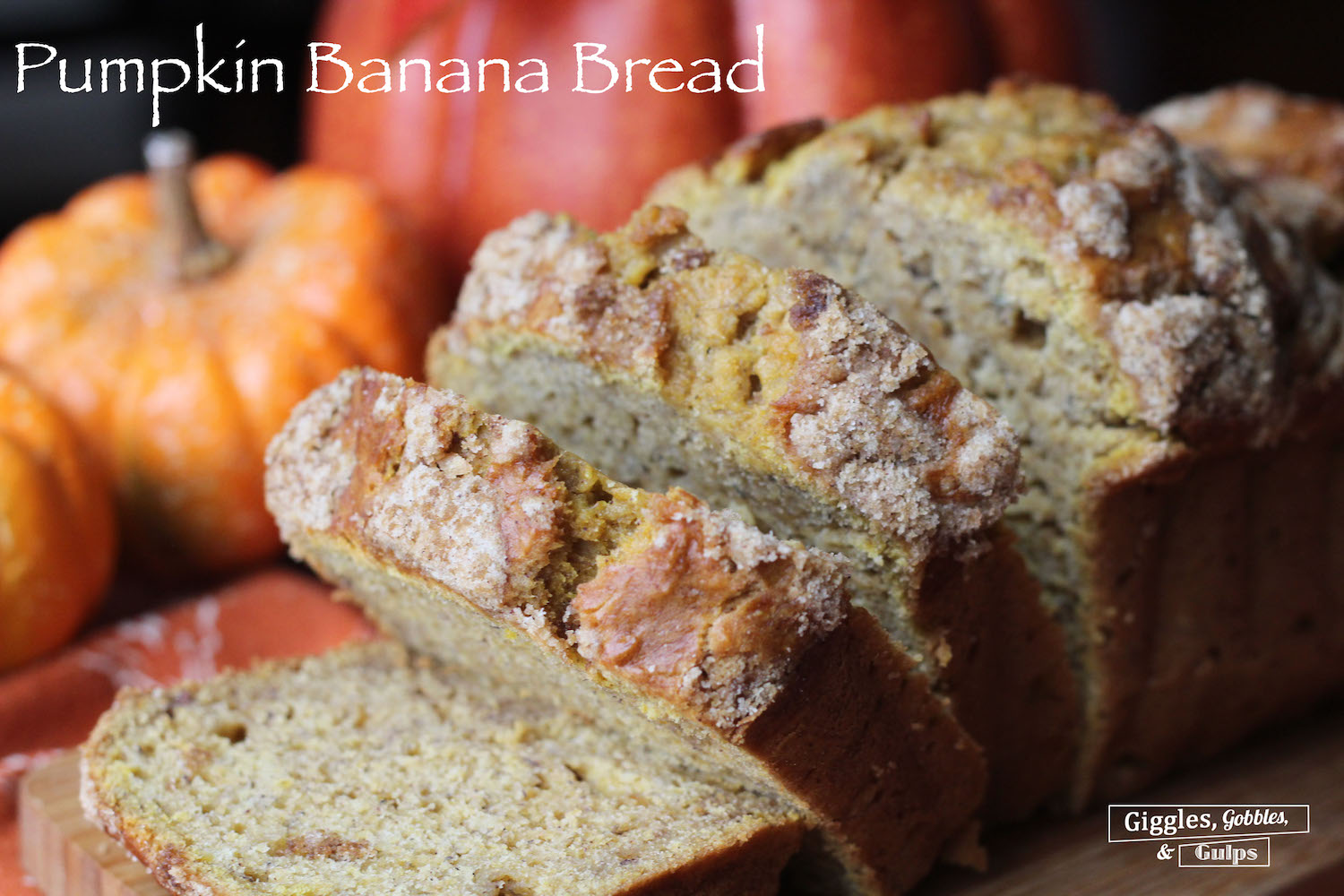 - In a separate medium bowl, whisk together the mashed bananas, pumpkin purée, milk, eggs, melted butter and vanilla. Add the wet ingredients to the dry ingredients and mix just until combined. Pour the batter into the prepared baking pan then liberally sprinkle the with a sugar crumble (see below).